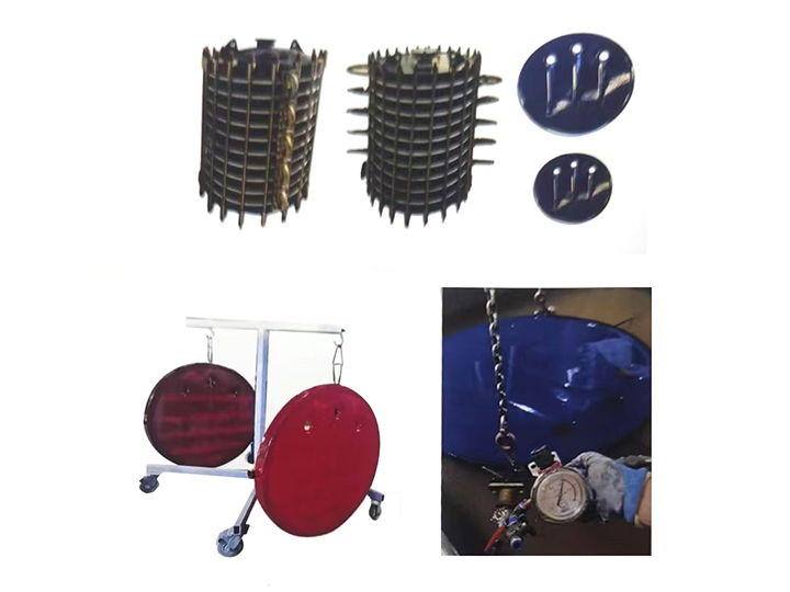 圓形平板片式冷凝器選用Q245,厚5mm、6mm容器板,經(jīng)過特殊工裝壓制,兩片之間有數(shù)條加強筋拼裝焊接成型。冷卻水經(jīng)過該產(chǎn)品內(nèi)部多條水道多次循環(huán),鐵胚經(jīng)過8公斤試壓無泄漏不變形,進入搪燒階段,采用GP-2耐酸堿天藍色瓷釉,冷搪工藝慢燒結(jié)而成。